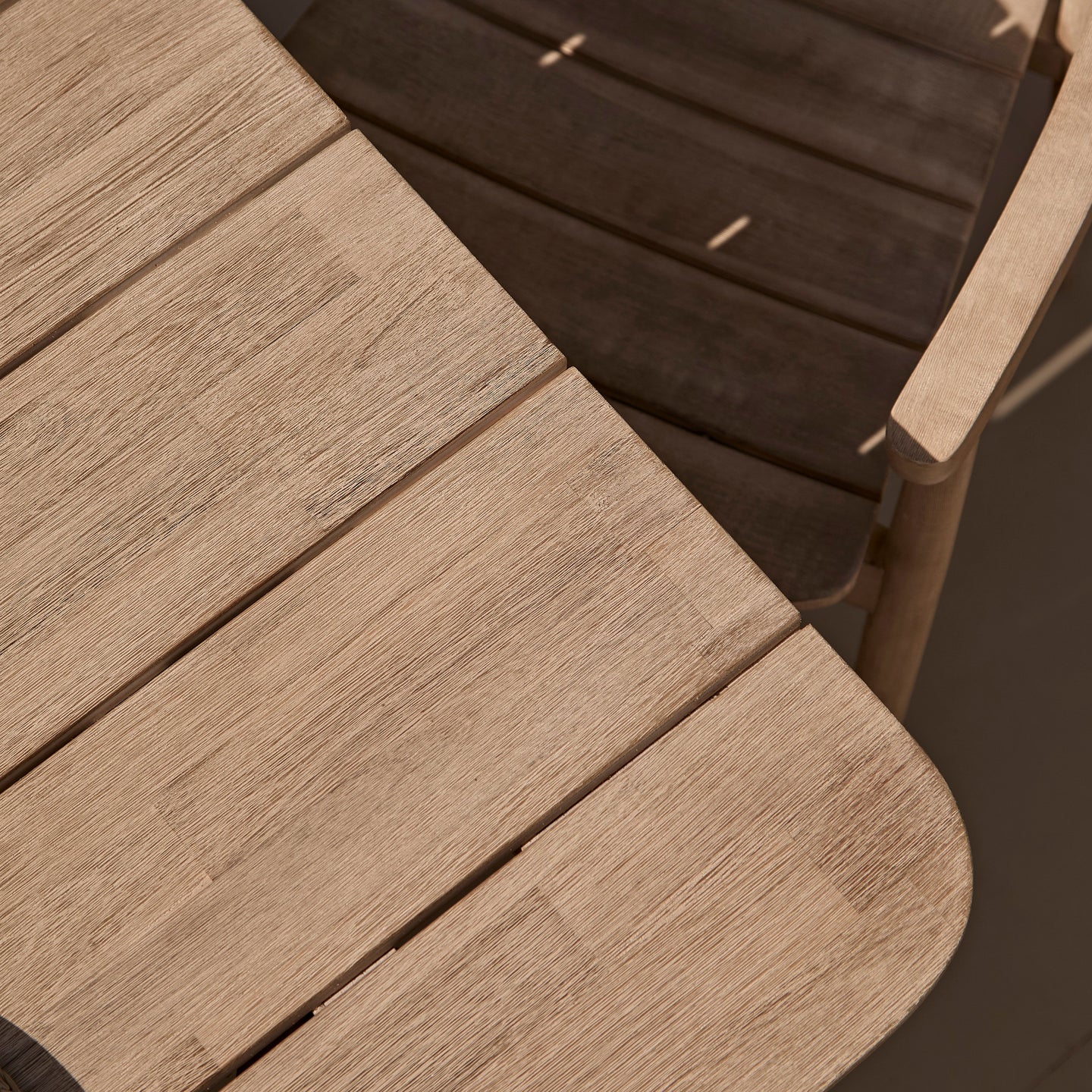 Create an elegant yet rustic spot for dining outdoors with the Elowen wooden garden dining table. Elowen seats six people comfortably and features a rectangular slatted tabletop for a rustic feel with tapered legs finished in premium brushed acacia wood.
